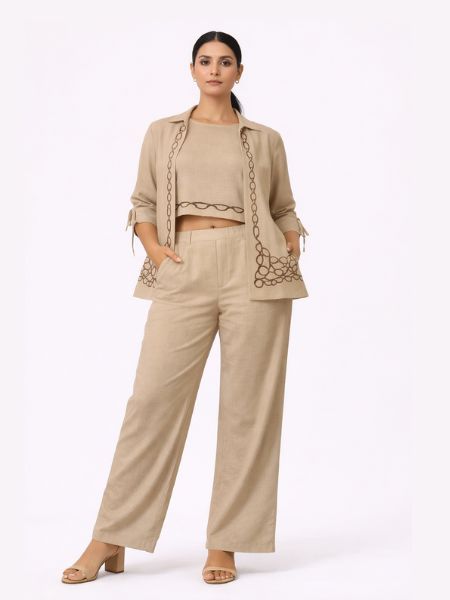 Colour – Beige with white embroidery
